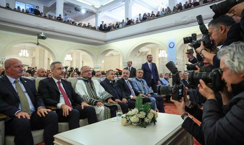 Dışişleri Bakanı Hakan Fidan, Gazi Üniversitesi’nin 2025-2026 Akademik Yılı Açılış Törenine katıldı. Tören kapsamında Gazi Üniversitesi Rektörü Prof. Dr. Uğur Ünal tarafından Bakan Fidan'a tarih alanında fahri doktora ünvanı tevdi edildi.