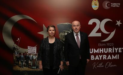 Denizli'de, 29 Ekim Cumhuriyet Bayramı dolayısıyla kentteki bir otelde düzenlenen resepsiyonda Vali Ömer Faruk Coşkun eşi Sevilay Coşkun ile misafirleri karşıladı.