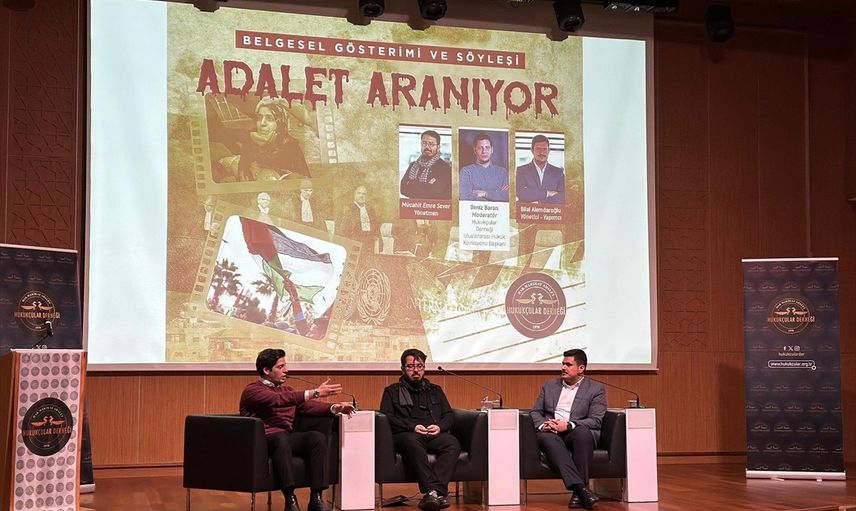 Hukukçular Derneğince hazırlanan ve Güney Afrika Cumhuriyeti'nin İsrail'e karşı Uluslararası Adalet Divanı’nda açtığı soykırım davasını konu alan "Adalet Aranıyor" belgeselinin gösterimi yapıldı.