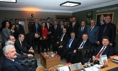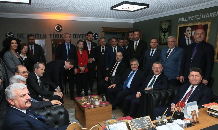 Adalet Bakanı Yılmaz Tunç (sağda), MHP Kocaeli İl Başkanlığını ziyaret etti. Ziyarette, MHP Kocaeli Milletvekili Saffet Sancaklı, MHP İl Başkanı Tuncay Batı da yer aldı.