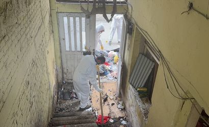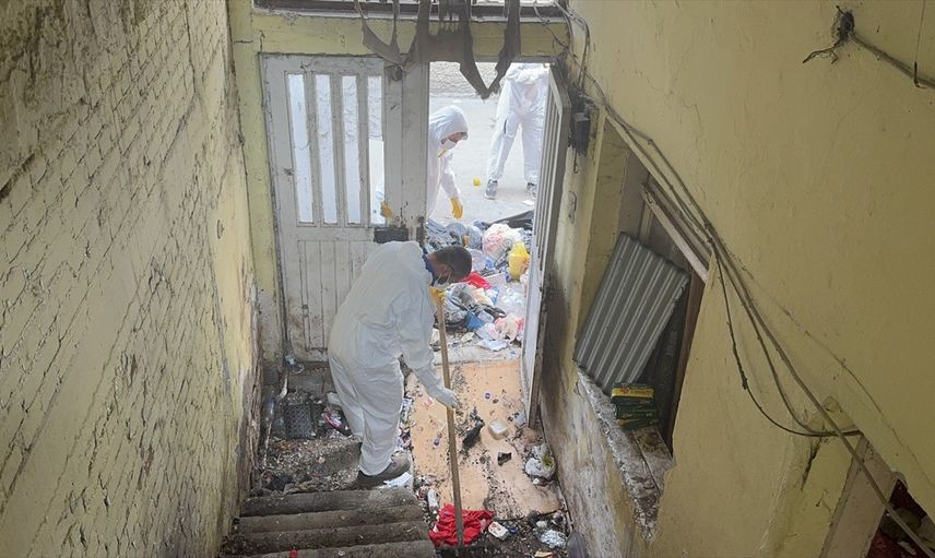 Belediye ekipleri, koruyucu kıyafetler ve maskelerle eve girerek temizlik çalışması gerçekleştirdi. Oda, koridor ve bahçede biriken atıklar, titizlikle toplandı.Atıkların Bertarafı