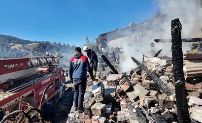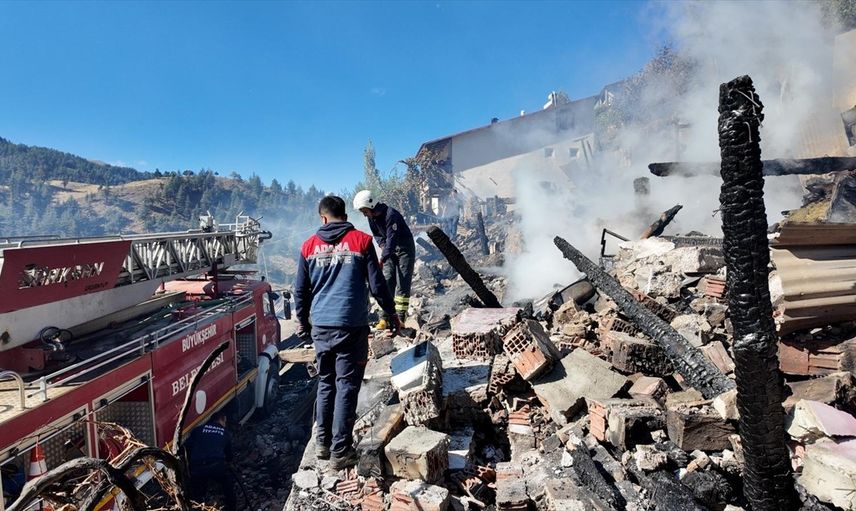 Yangının yayılması üzerine evdeki durum 112 Acil Çağrı Merkezi'ne iletildi. İhbarın ardından olay yerine gelen itfaiye ekipleri, uzun bir mücadele sonrasında hem çöken evdeki hem de diğer evdeki yangını söndürdü.