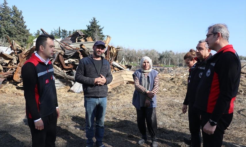 8 Şubat tarihinde Zeytinbeli Mahallesi'nde meydana gelen yangında 120 küçük baş ve 10 büyükbaş hayvanı telef olan Rasim Soylu'nun çiftliğini ziyaret eden İl Tarım ve Orman Müdürü Mehmet Nuri Kökçüoğlu, besiciye 11 ton yem ile çadır ve mısır silajı verdiklerini açıkladı.