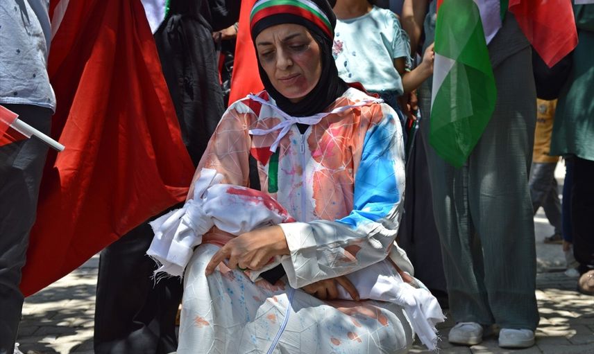 Atalay, ayrıca, katil İsrail'e karşı lanetlerini ve özgürlük mücadelesi veren Filistinli kardeşlerine destek duygularını tüm dünyaya iletmek istediklerini belirtti. Protesto etkinliği, dualarla sona erdi.