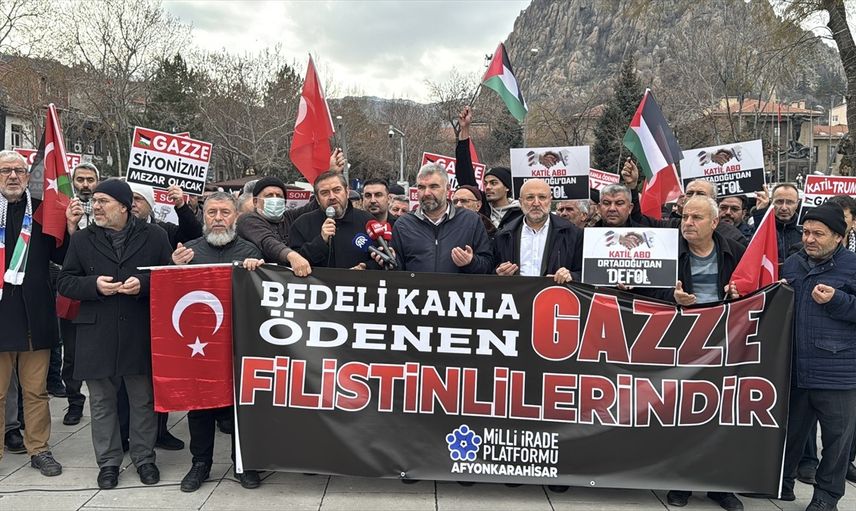 Afyonkarahisar'da, Filistinli halkı zorla yerinden etme planına karşı bir protesto gerçekleştirildi. Etkinlik, Zafer Meydanı'nda topluma açık bir şekilde yapıldı.
