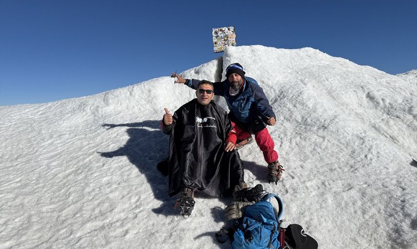 Iğdırlı berber ve dağcı Murat Akay, kendisiyle Ağrı Dağı'nın zirvesinde tırmanan müşterisini, 5 bin 137 metrede tıraş etti.