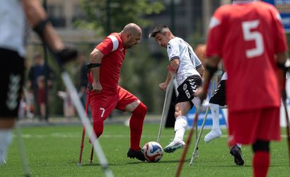 Avrupa Ampute Futbol Şampiyonlar Ligi'nde Alves Kablo Ampute Futbol Kulübü ile AFC Tiflis takımları, Eryaman Spor Köyü'nde karşılaştı. Alves Kablo Ampute Futbol Kulübü futbolcusu Ömer Güleryüz (10) attığı gol sonrası takım arkadaşı Fatih Şentürk (9) ile sevinç yaşadı.