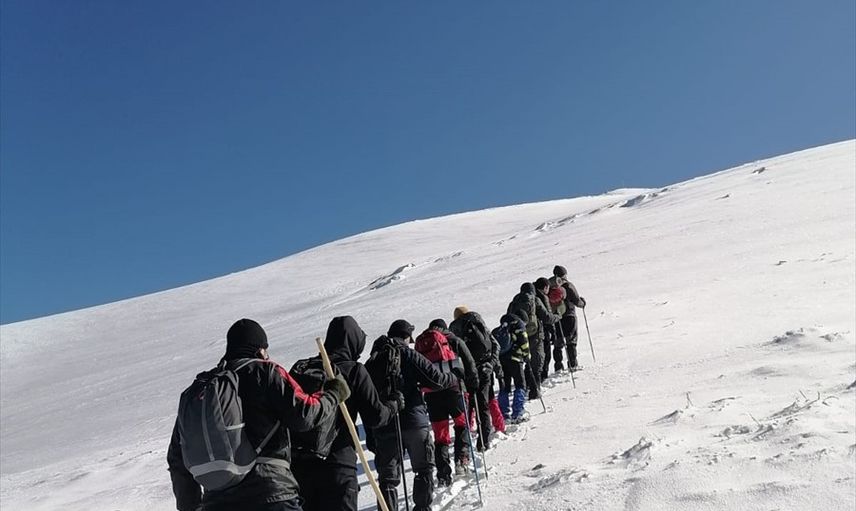 Dağ Aslanları Dağcılık ve Doğa Sporları Kulübü üyesi dört dağcının öncülüğünde toplamda 16 kişilik bir ekip, 2 bin 240 metre yükseklikte yer alan Mığır Tepesi'ne tırmandı.