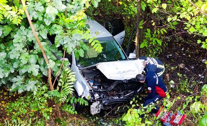 Amasya'da otomobilin bahçeye devrilmesi sonucu 4 kişi yaralandı.
