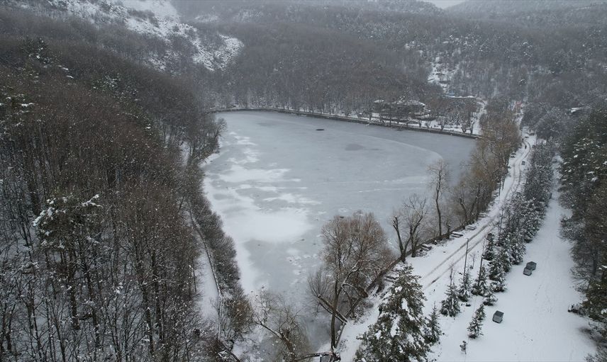 Ankara'nın Çubuk ilçesindeki Karagöl Tabiat Parkı'nda kar yağışı etkili oldu.