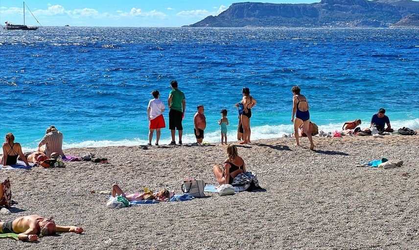 Antalya'nın Kaş ilçesinde son günlerde devam eden yağışların ardından güneşli hava, yerli ve yabancı turistlerin ilgisini çekti. Tatilciler, sahillerde yoğun bir kalabalık oluşturdu.