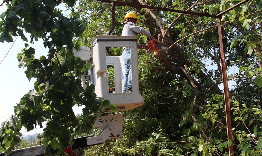 Antalya'da etkili olan sağanak ve fırtına nedeniyle ağaçlar devrildi.