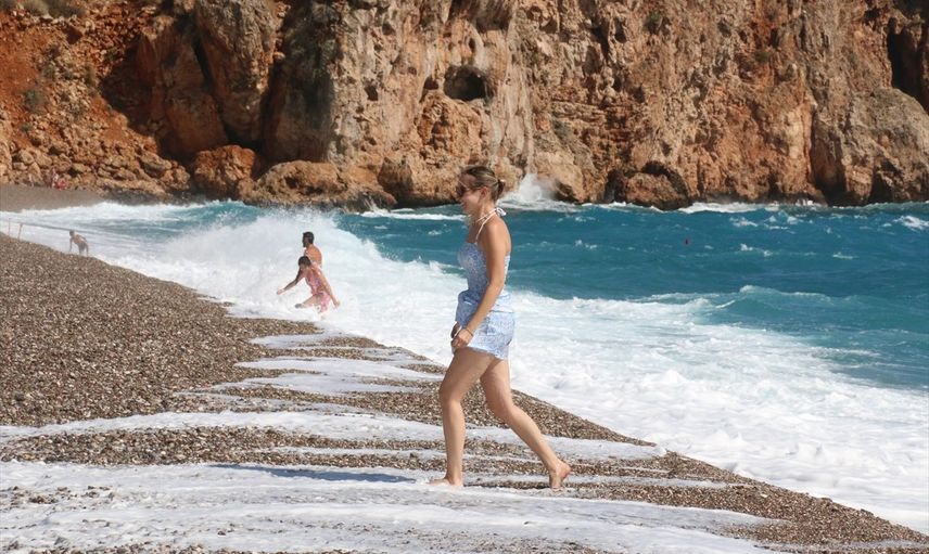 Özellikle tatil yapan Rus ve Alman turistler, rüzgarlı havaya ve dalgalı denize rağmen Konyaaltı Sahili'nde vakit geçirdi. Dalgaların arasında yüzmeye çalışan bazı turistler zor anlar yaşarken, sahildeki cankurtaranlar kıyıdan fazla açılanlara megafonla uyarılarda bulundu.