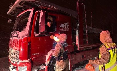 Ardahan'da etkili olan kar ve tipi nedeniyle araçlarıyla yolda kalanlara çorba ve kumanya ikramında bulunuldu.