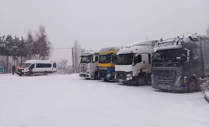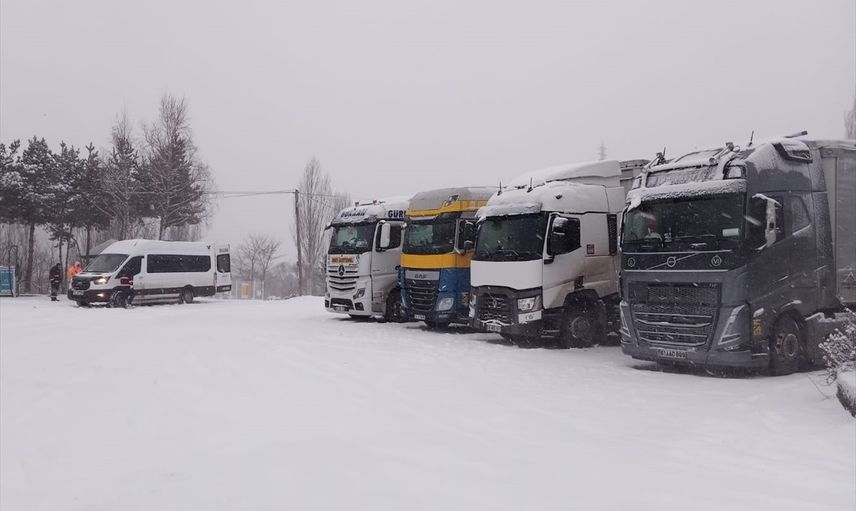 Damal-Posof-Türkgözü ile Ardahan-Şavşat kara yolunda, kar ve yoğun tipi nedeniyle tır geçişine izin verilmiyor.