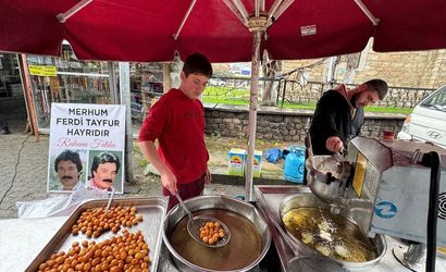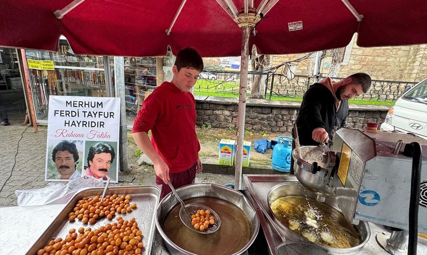 Belediye Meydanı'nda kurulan stantta, Tayfur'un hayranları ve ziyarete gelen vatandaşlara lokma ikram edildi.