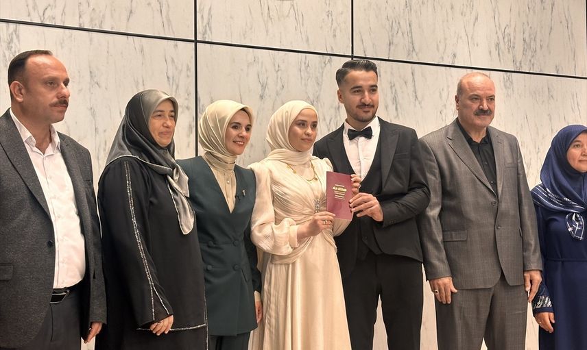 Bakan Göktaş, çifte evlilik cüzdanını takdim ederken, "Evlilik emek ister, saygı ve sabır gerektir. Bu değerleri ailelerinizden öğrendiniz, ama biz de tekrar vurgulamak istiyoruz. Rabb'im, ikinize de ebedi mutluluk nasip etsin." diye konuştu.