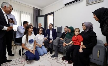 Çevre, Şehircilik ve İklim Değişikliği Bakanı Murat Kurum, dün çeşitli temaslarda bulunmak üzere gittiği Kahramanmaraş'ın Dulkadiroğlu ilçesinde yeni evlerine taşınan depremzede Tıraş ailesini ziyaret etti.
