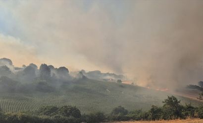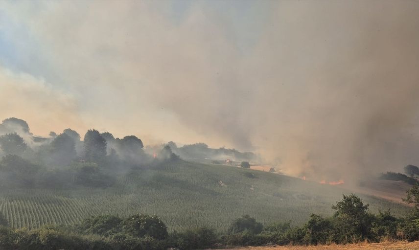Balıkesir'in Susurluk ilçesinde, arazide çıkan yangın, havadan ve karadan müdahaleyle kontrol altına alınmaya çalışılıyor.