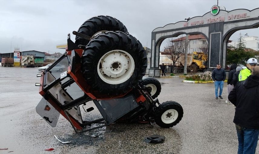 Balıkesir'in Savaştepe ilçesinde traktör ile otomobil çarpıştı. Çarpışmanın etkisiyle ters dönen traktörün sürücüsü yaralandı. İhbar üzerine bölgeye polis ve sağlık ekipleri sevk edildi.