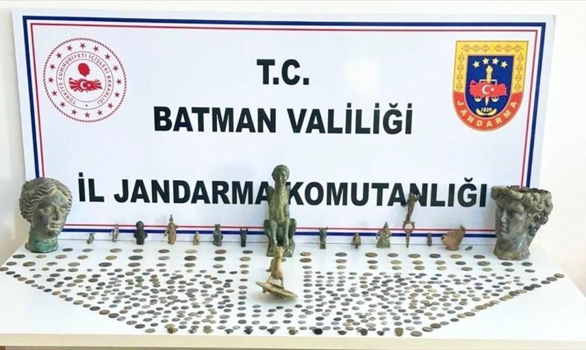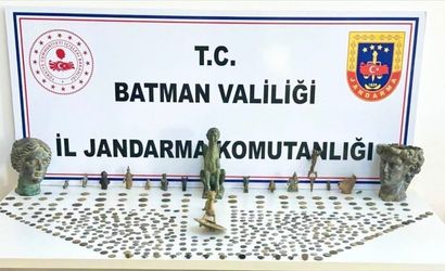 Batman'da düzenlenen tarihi eser operasyonunda, toplamda 802 sikke, 29 obje, 2 büst ve bir heykel ele geçirildi.