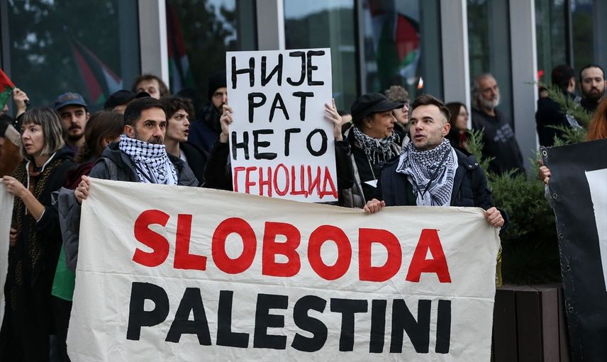 Sırbistan'ın başkenti Belgrad'da, İsrail'in Gazze'de 8 Ekim 2023'ten bu yana 2 yıldır devam ettirdiği soykırıma dikkati çekmek için gösteri düzenlendi. Sırbistan'daki Filistin Halkına Destek Platformu tarafından düzenlenen gösteride, yüzlerce kişi İsrail'in Gazze'de sürdürdüğü soykırıma ve Filistin'de yaşanan insanlık dramına dikkati çekmek, Küresel Sumud Filosu'na destek amacıyla toplantı. Filistin bayrakları taşıyan kalabalık, "İsrail çocukları öldürüyor" ve "ABD katilleri koruyor" yazılı dövizler taşıdı.