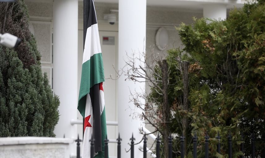 Suriye'nin Belgrad Büyükelçiliğinde, çöken Baas rejimine ait bayrağın yerine "Suriye devrimi bayrağı" göndere çekildi.