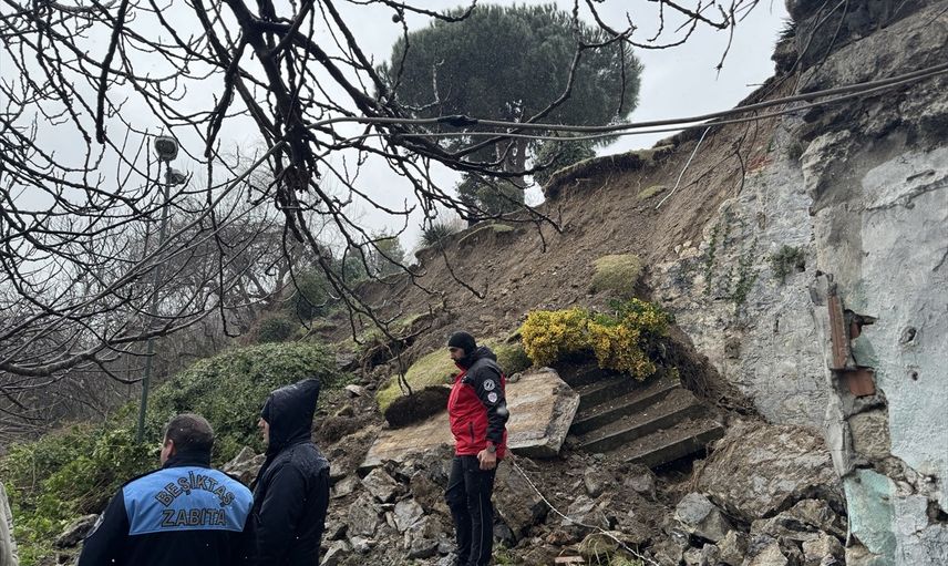 Beşiktaş'ta yağış nedeniyle meydana gelen toprak kaymasının ardından istinat duvarı yıkıldı.