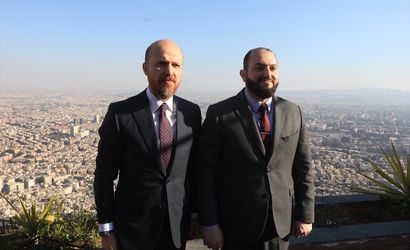 İlim Yayma Vakfı Mütevelli Heyeti Başkanı Bilal Erdoğan (sol 2) ve beraberindeki Türk heyet, Cumhurbaşkanı Ahmed Şara ile görüşmenin ardından Şam'ın terası konumundaki Kasyun Dağı'nı ziyaret etti.