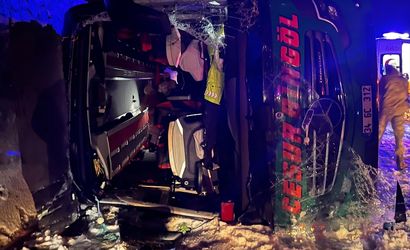Bingöl'de bir yolcu otobüsünün devrilmesi sonucu gerçekleşen kazada 2 kişi hayatını kaybetti, 16 kişi yaralandı.