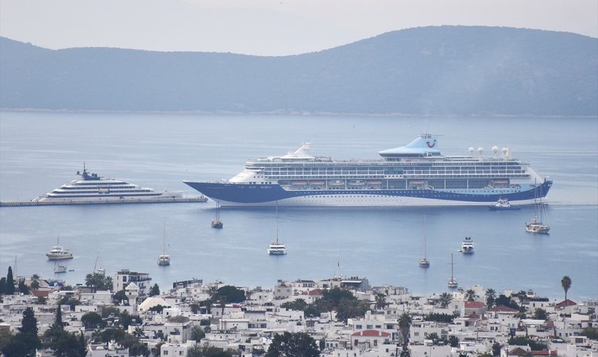 Muğla'nın Bodrum ilçesi, bu sezonun son seferlerini gerçekleştiren iki büyük kruvaziyer gemisiyle hareketlendi. Bahamalar bayraklı "Marella Discovery 2" ve "Emerald Azzurra" isimli gemiler, toplamda 1853 yolcuyla Bodrum Yolcu Limanı'na yanaştı.