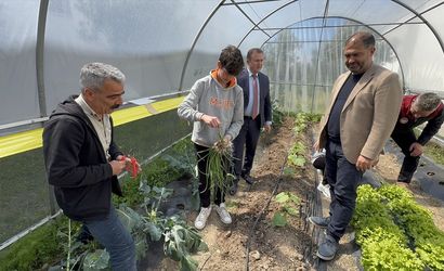 Muğla'nın Bodrum ilçesinde, okulda yürütülen "Okuldaki Çiftlik Projesi" çerçevesinde serada yetiştirilen ürünlerin hasadı gerçekleştirildi.