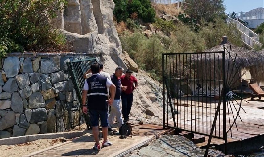 Muğla'nın Bodrum ilçesinde sahile yapılan demir kapı, Bodrum Kaymakamı Mustafa Çit'in talimatı üzerine ekiplerce kaldırıldı.