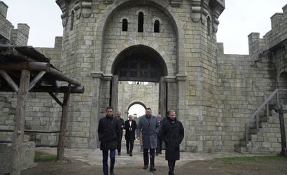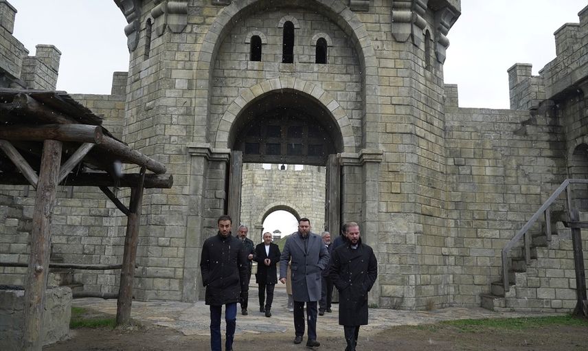 Ünlü dizi "Kuruluş Osman"ın çekim alanını ziyaret eden katılımcılar, Burak Özçivit ile bir araya gelerek hatıra fotoğrafı çektirdi.
