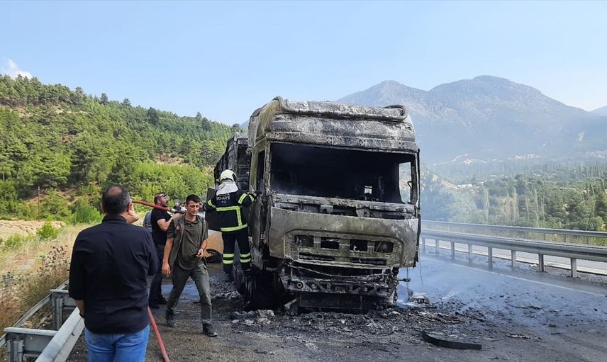 Burdur'da, yangın çıkan tır kullanılamaz hale geldi.
