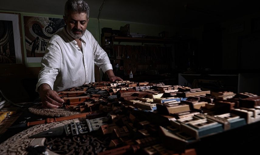 Bursa'nın Nilüfer ilçesinde, evinin altındaki atölyesinde 15 yıllık bir sürede geliştirdiği 3 boyutlu ahşap sanatında, ahşap oyma, kakma, marküteri, naht, kıl testere kesimi ve ahşap boyamayı harmanlıyor.