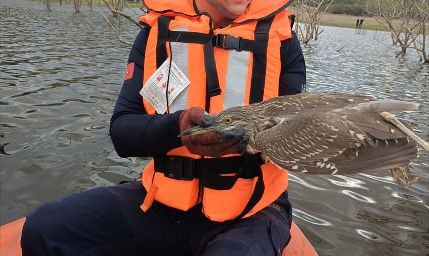 Bursa'nın İnegöl ilçesinde, Boğazköy Mahallesi Sungurpaşa mevkiindeki bir gölette, misinaya takılarak mahsur kalan yabani kuş, AFAD Arama Kurtarma ekipleri tarafından kurtarıldı.