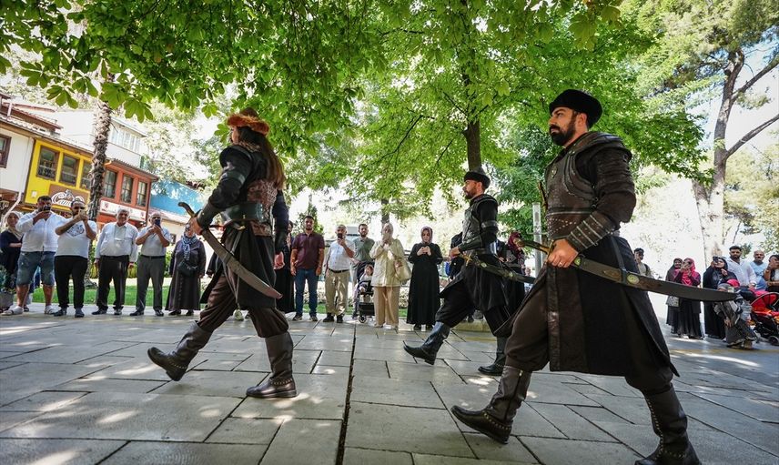 Osmanlı Devletinin kurucusu Osman Gazi'nin türbesinde jandarma personelinin alp kıyafetleri, kılıç ve baltayla tuttuğu saygı nöbeti, 5 yıldır aralıksız devam ediyor. Bursa'nın düşman işgalinden kurtuluşunun 98'inci yılı etkinlikleri kapsamında Eylül 2020'de türbe önünde İl Jandarma Komutanlığı görevlilerince başlatılan saygı nöbeti, o tarihten beri sürüyor.
