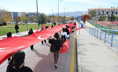 Çankırı Karatekin Üniversitesi'nde (ÇAKÜ) Cumhuriyet'in kuruluşunun 102. yılı dolayısıyla 102 metrelik bayrak ile kortej yürüyüşü yapıldı.