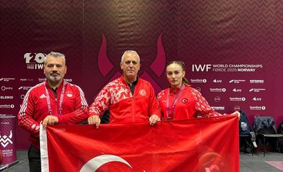 Milli sporcu Cansel Özkan (sağda), Norveç'te düzenlenen Dünya Halter Şampiyonası'nda bronz madalya elde etti.
