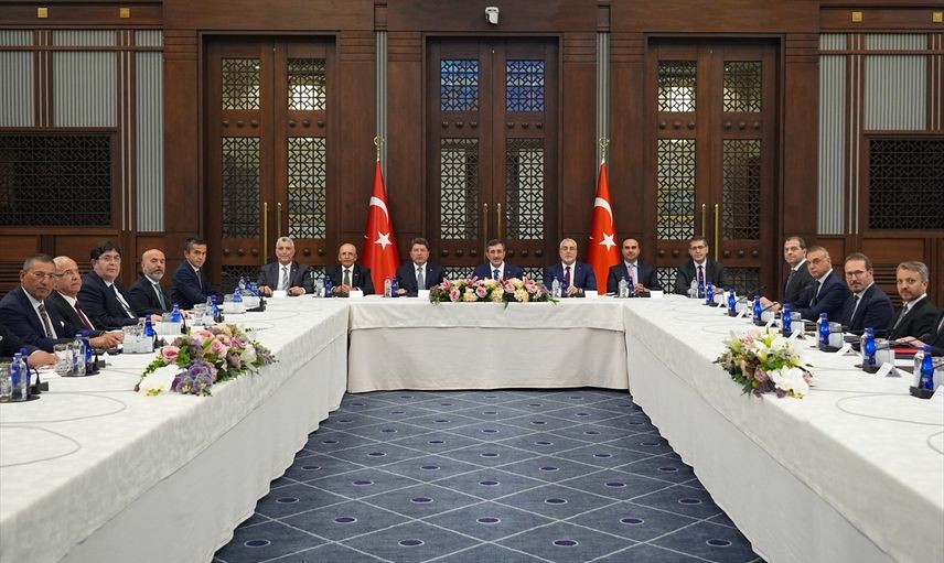 Görüşmeye Adalet Bakanı Yılmaz Tunç, Çalışma ve Sosyal Güvenlik Bakanı Vedat Işıkhan, Hazine ve Maliye Bakanı Mehmet Şimşek, Sanayi ve Teknoloji Bakanı Mehmet Fatih Kacır, Ticaret Bakanı Ömer Bolat, Cumhurbaşkanlığı Strateji ve Bütçe Başkanı İbrahim Şenel ile bazı bakan yardımcıları da katıldı.