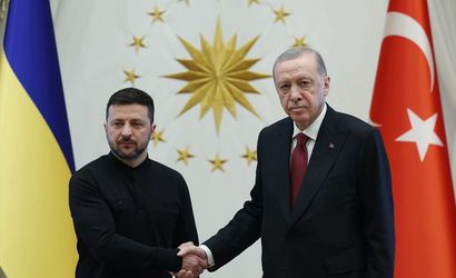 Görüşme öncesinde, Erdoğan ve Zelenskiy, Türk ve Ukrayna bayrakları önünde poz vererek basın için fotoğraf çektirdi.