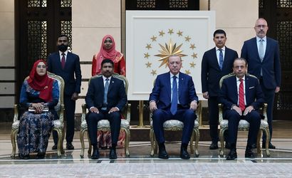 Cumhurbaşkanı Recep Tayyip Erdoğan, önemli ülkelerin yeni büyükelçilerini Cumhurbaşkanlığı Külliyesi'nde kabul etti. Kabulde, Maldivler Büyükelçisi Abdul Raheem Abdul Latheef, Danimarka Büyükelçisi Ole Toft, İsviçre Büyükelçisi Guillaume Bertrand Scheurer, Gana Büyükelçisi Nicholas Peter Andoh, Almanya Büyükelçisi Sibylle Katharina Sorg ve Letonya Büyükelçisi Bahtijor Hasanss yer aldı.