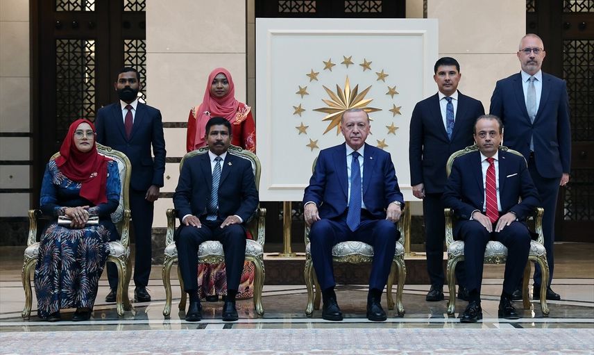 Cumhurbaşkanı Recep Tayyip Erdoğan, Maldivler Büyükelçisi Abdul Raheem Abdul Latheef'i kabul etti. Cumhurbaşkanlığı Külliyesi'ndeki kabulde Büyükelçi Abdul Latheef, Cumhurbaşkanı Erdoğan'a güven mektubunu sundu.