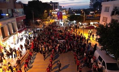 Hatay'ın Dörtyol ilçesinde Cumhuriyet'in 102. yıl dönümü dolayısıyla 400 metre uzunluğundaki Türk bayrağı ve Atatürk posteriyle yürüyüş yapıldı.