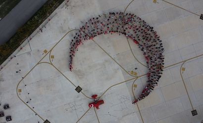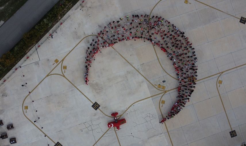 Öztürk’ün uçuşunun ardından, Türk bayraklarıyla donanmış yüzlerce katılımcı, tesisin apronunda hilal ve yıldız şeklini oluşturdu. Türk bayrağının yıldız kısmını ise Türkiye'nin tek sivil kadın akrobasi pilotu Semin Öztürk Şener, "Yeni Menekşe" adlı uçağıyla oluşturdu. Dron ile havadan çekilen görüntüler etkinliğe ayrı bir renk kattı.