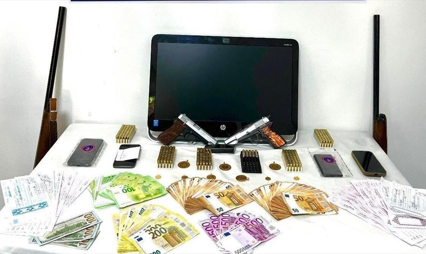 Operasyon sırasında yapılan aramalarda ortaya çıkan bulgular dikkat çekiciydi. 15 milyon liralık 12 senet, 37 bin 500 avro, 3 bin 250 dolar, 9 Cumhuriyet altını, 149 boş senet, 4 doküman, 2 ruhsatsız tabanca, 2 ruhsatsız av tüfeği, 443 tabanca fişeği ve 4 cep telefonu ele geçirildi.