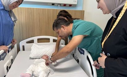 Gaziantep'te, doğuştan göğüs kemiği bulunmayan 20 günlük bir bebek olan Eylüle, kıkırdak dokusundan yapılan yeni göğüs kemiği ile sağlık yoluna adım attı.
