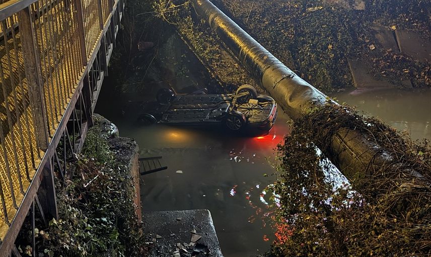 Düzce'de otomobilin dereye yuvarlanması sonucu 2 kişi yaralandı.