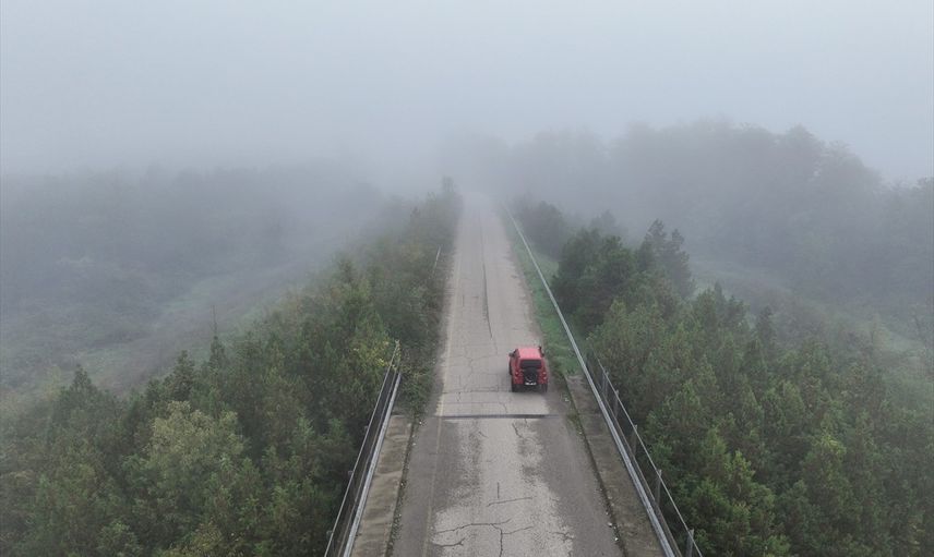 Anadolu Otoyolu'nun Düzce kesiminde etkili olan sis, görüş mesafesini düşürdü. Düzce Ovası'nın kuzey ve güney kısımlarında sisin hakim olduğu ve sis tabakasının kapladığı ova ile otoyoldaki trafik akışı, havadan görüntülendi.